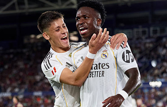 | К победам «Реала» и «Барселоны» в Примере, думается, все уже привыкли. Если «сливочные» не потеряют очки в мадридском дерби, которое должно состояться в эту субботу, то тогда даже непонятно, кто сможет остановить команду Хаби Алонсо до эль класико. В этом туре был разгромлен «Леванте» (4:1). Аналогично и у сине-гранатовых: «Овьедо» вполне мог устроиться на разгром, если бы не ошибка Хоана Гарсии – 3:1. «Реал Сосьедад», с которым каталонцам играть в воскресенье, обошелся без Захаряна и... выиграл. Впервые в сезоне! Пострадала «Мальорка» (1:0), чьи позиции выглядят так же слабо, как и у «Жироны», но подопечные Мичела ухитрились скатать ничью против «Атлетика» (1:1). Еще одна команда из Страны басков отобрала очки у «Хетафе» в гостях (1:1), а оставшийся каталонский клуб в лице «Эспаньола» спасся дома против «Валенсии» (2:2). Феерический поединок с хет-триком Хулиана Альвареса сыграл «Атлетико» в малом мадридском дерби против «Райо Вальекано» (3:2), тогда как «Эльче» чуть не потерпел первое поражение в Памплоне, но все же сравнял против «Осасуны» (1:1). «Вильярреал» держится в тройке, потому что в гостях переиграл «Севилью» – 2:1. «Сельта» и «Бетис» еще в конце августа сыграли вничью (1:1), потому что у «огурцов» вчера было выступление в Лиге Европы. ![]() Фото - Getty Images «Реал» первым из грандов вступал в бой. Хаби Алонсо идет на рекорд, поэтому каждый матч уже рассматривается под микроскопом, но визит в Валенсию к «Леванте» стал, скорее, легкой прогулкой. Первая треть тайма, правда, осталась за «лягушками», вот только Ромеро и де ла Фуэнте свои шансы не использовали. «Сливочные» выжидали, а затем за 10 минут решили исход встречи. Сначала Винисиус Жуниор в середине тайма ударом внешней стороной стопы с правого края штрафной отправил по дуге снаряд под дальнюю стойку, а затем бразилец ассистировал Мастантуоно, который выбежал почти один на один и с того же места поразил ближнюю «девятку» ворот. После перерыва надежду хозяевам дал Эйонг, переправивший мяч с нескольких сантиметров в сетку после ошибки Куртуа, но Килиан Мбаппе упрочил статус лучшего бомбардира лиги, отличившись дважды. На 64-й минуте француз исполнил пенальти, заработанный им же, а еще через 3 минуты реализовал выход один на один после передачи Гюлера. Деморализованный «Леванте» сдался досрочно. «Райо Вальекано» отнял очки у «Барселоны» и был близок к этому на «Метрополитано», но не сложилось. В ударе был самый критикуемый игрок «матрасников» на старте сезона – Хулиан Альварес. Именно аргентинский страйкер открыл счет в первой трети тайма, убежав на левую штангу под перевод от Льоренте справа и замкнув в касание со своей левой. Гости выдержали и в компенсированное время отыгрались. Чаваррия сочно выстрелил в левую «девятку» метров с 30-35. Красотища! В тайме втором опасными ударами обменялись Палазон и Нико Гонсалес, но забили не они. Альваро Гарсия убежал один на один с Облаком, обыграл вратаря и забил в пустые. Радовались «пчелы» ровно 3 минуты, потому что молчавший Альварес сначала оформил дубль, когда добил с полуметра снаряд в сетку после сейва Батальи, а затем и хет-трик за две минуты до конца основного времени. В этот раз аргентинец нанес неотразимый удар с дуги штрафной в правую «девятку». Ответить на это у «Райо» уже не получилось. Ничьи в компенсированное время для «Эспаньола» и «Эльче». Безв