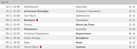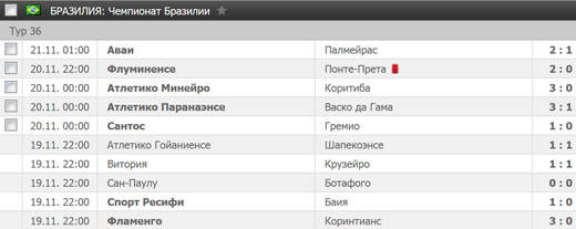 «Коринтианс» досрочно стал чемпионом Бразилии, обыграв в матче 35 тура «Флуминенсе» (3:1). За три тура до конца команда из Сан-Паулу обеспечила себе титул. Это чемпионство стало для «народной команды» седьмым в истории и вторым за последние три года. Теперь по числу побед в чемпионате «Коринтианс» на один титул отстает от «Сантоса» и на два – от рекордсмена Бразилии и теперь уже экс-чемпиона «Палмейраса». Выиграл и «Брюгге», правда, пока только первый круг. «Чёрно-синие» прошли половину дистанции уверенно, выиграв 12 матчей из 15. Ближайший преследователь «Шарлеруа» отстал на шесть очков. «Андерлехт» идёт только третьим. Таблица начинает обретать привычный вид – «Генк», «Гент» и «Стандард» оклемались, вернувшись в десятку. А Чехия не порадовала – все четверо выступающих там россиян на поле так и не появились. «Виктория» ожидаемо выиграла 14 матч кряду, продолжив своё феноменальное шествие по турнирной таблице. Преследователи (если их можно так назвать) свои матчи тоже выиграли – обошлось без неожиданностей.Бразилия. 33-36 туры. «Коринтианс» стал чемпионом за три тура до конца. Финишный спурт «народная команда» начала с трудовой победы над «Атлетико Паранаэнсе». Хозяева в первом тайме проверили на прочность каркас ворот, а затем запороли пенальти. Расточительность аукнулась в концовке, когда вышедший на замену Джованни Аугусто принёс победу «Коринтиансу». Из конкурентов тот уик-энд сложился удачно только для «Гремио». «Мушкетеры» дожали оставшуюся уже на 18-й минуте вдесятером «Понте-Прету». А «Сантос» и «Палмейрас» свои матчи проиграли. Чемпион получил две пробоины от «Витории» к исходу трети тайма, после чего команды обменялись голами ещё до перерыва обменялись голами и успокоились. «Сантос» играл по счёту с «Васко да Гамой», ведя в один мяч, но развалился в заключительные несколько минут, пропустив дважды. «Крузейро» был бит «Фламенго», пропустив по голу на излёте каждого из таймов. «Коринтианс» и в следующем туре удовлетворился минимальной победой. Колин Казим-Ричардс забил единственный мяч в ворота «Аваи» в дебюте второго тайма. «Гремио» темпа не выдержал, не сумев дожать дома «Виторию», последние полчаса отбегавшую вдесятером. «Палмейрас» благодаря дублю отбывшего дисквалификацию Дейверсона смял «Фламенго», а «Сантос» снова провалился, вчистую проиграв «Шапекоэнсе». Поражение стало для «рыб» вторым кряду. Зато подтянулся к лидерам «Крузейро» благодаря волевому выносу «Флуминенсе». Гости забили уже на седьмой минуте, получив затем три в ответ. «Ботафого» отказался от притязаний на что-то серьёзное, слив дома «Атлетико Паранаэнсе». Преследователей лихорадило, и «Коринтианс» всё ближе подбирался к досрочному «золоту». Тем временем повсюду шли бои местного значения. Дубль Робиньо спас «Атлетико Минейро» от поражения в гостях у «Баии». «Атлетико Гойаниенсе» предпринял отчаянную попытку спастись, дублем Диего Росы утопив «Спорт Ресифи». За три тура до финиша «Флуминенсе» подарил шанс на интригу. Как и туром ранее, «Большой Флу» забил супербыстрый гол, сумев на сей раз выстоять до перерыва. Однако из раздевалки Жо оформил дубль за три минуты, а в концовке Жадсон сделал контрольный выстрел, гарантировав «Коринтиансу» недосягаемость от конкурентов. Вымученные «Гремио» три очка в матче с «Сан-Паулу», вынос тела «Палмейра