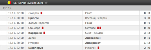 «Коринтианс» досрочно стал чемпионом Бразилии, обыграв в матче 35 тура «Флуминенсе» (3:1). За три тура до конца команда из Сан-Паулу обеспечила себе титул. Это чемпионство стало для «народной команды» седьмым в истории и вторым за последние три года. Теперь по числу побед в чемпионате «Коринтианс» на один титул отстает от «Сантоса» и на два – от рекордсмена Бразилии и теперь уже экс-чемпиона «Палмейраса». Выиграл и «Брюгге», правда, пока только первый круг. «Чёрно-синие» прошли половину дистанции уверенно, выиграв 12 матчей из 15. Ближайший преследователь «Шарлеруа» отстал на шесть очков. «Андерлехт» идёт только третьим. Таблица начинает обретать привычный вид – «Генк», «Гент» и «Стандард» оклемались, вернувшись в десятку. А Чехия не порадовала – все четверо выступающих там россиян на поле так и не появились. «Виктория» ожидаемо выиграла 14 матч кряду, продолжив своё феноменальное шествие по турнирной таблице. Преследователи (если их можно так назвать) свои матчи тоже выиграли – обошлось без неожиданностей.