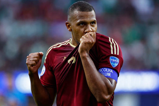 Очный матч лидеров группы B принёс неожиданный результат: Венесуэла обыграла Мексику и не только единолично возглавила таблицу квартета, но и досрочно вышла в плей-офф. Нельзя не отметить, что венесуэльцы прогрессируют в последние годы, и их уже не стоит воспринимать в статусе беспросветного аутсайдера зоны КОНМЕБОЛ. Но всё равно шансы Мексики и Эквадора на выход в четвертьфинал из этого квартета перед стартом турнира виделись более предпочтительными. Поэтому успех команды Фернандо Батисты является сенсацией. Мексика ожидаемо на протяжении большей части матча владела территориальным перевесом. Правда, по ходу первого тайма она создала немного по-настоящему опасных моментов. Лучшую возможность открыть счёт до перерыва имел Хименес, но ему не удалось переиграть Рафаэля Ромо в ближнем бою. Венесуэльцы, в свою очередь, нередко находили возможности для проведения контратак. В одной из них по ходу первой половины встречи Рондон отметился попаданием в стойку ворот Гонсалеса. Зато стартовый отрезок второй сорокапятиминутки Венесуэла провела очень мощно. Она создала несколько опасных моментов и по делу открыла счёт. Арамбуру заработал пенальти, который уверенно реализовал Рондон. Захватив лидерство, команда Батисты ожидаемо стала обороняться большими силами и заметно снизила количество контрвыпадов. Мексика по ходу заключительного отрезка практически беспрерывно атаковала. “Трёхцветные” имели несколько хороших шансов воплотить атакующую активность в забитый мяч и избежать поражения. Лучшая возможность отличиться была у Пинеды, однако Рафаэль Ромо потащил удар Орбелина с одиннадцатиметровой отметки. На последних минутах мексиканцы организовал полноценный финальный штурм, который не увенчался успехом. Таким образом, Венесуэла с шестью набранными очками единолично возглавляет таблицу группы. Для итогового первого места в квартете ей достаточно сыграть вничью с Ямайкой в заключительном туре, чтобы не зависеть от результата параллельного матча. А вот Мексика поставила себя в крайне неприятное положение. Команде Хайме Лосано для выхода в четвертьфинал нужно обязательно побеждать Эквадор, так как в случае ничейного результата эквадорцы останутся на второй позиции в группе благодаря лучшей разнице мячей. ![]() Фото - Getty Images. Предыстория. Венесуэла многих удивила в стартовом туре победой над Эквадором со счётом 2:1. Команда Батисты благодаря удалению Валенсии в середине первого тайма заработала численный перевес. Правда, незадолго до перерыва она позволила игравшим в меньшинстве эквадорцам выйти вперёд, но во второй сорокапятиминутке венесуэльцы полностью забрали игру под свой контроль и благодаря результативным ударам вышедших на замену Кадиса и Бельо добыли волевую победу. Успех в противостоянии с эквадорцами заметно увеличил шансы Венесуэлы на выход в четвертьфинал. Мексика, в свою очередь, начала своё выступление на турнире с трудной победы над Ямайкой - 1:0. Победу “трёхцветным” принёс точный удар Артеаги в середине второго тайма. При этом качество игры со стороны команды Лосано было невпечатляющим. Отрезками контроль мяча с её стороны был стерильным и не воплощался в создание острых моментов. Успешный результат для мексиканцев в стартовом матче омрачила травма их капитана Эдсона Альвареса. Накануне стало