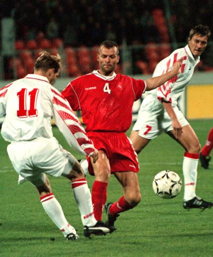 Белоруссия: Андрей Сацункевич, Эрик Яхимович, Андрей Островский, Сергей Штанюк, Мирослав Ромащенко (Вячеслав Геращенко, 39), Сергей Гуренко, Александр Хацкевич, Василий Баранов, Валентин Белькевич, Владимир Маковский (Максим Ромащенко, 88), Андрей Лаврик. Дания: Петер Шмейхель, Оле Тобиасен, Марк Рипер, Йес Хог, Ян Хайнце, Томас Хельвег, Аллан Нильсен, Клаус Томсен, Йон Даль Томассон (Сорен Фредериксен, 81), Мартин Йоргенсен (Томас Гравесен, 67), Петер Меллер (Сорен Андерсен, 67).