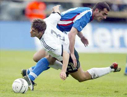 Сборная Германии на последних минутах вырвала победу у сборной Фарерских островов. За минуту до конца основного времени счет открыл вышедший на замену Клозе, а в добавленные минуты отличился Фреди Бобич. Германия осталась единоличным лидером группы, опережая Исландию на два очка и Шотландию на три очка. Первый тайм прошел с заметным преимуществом гостей, в составе которых дважды обязан был забивать Фреди Бобич. На 23-й минуте вратарь Миккельсен отбил мяч прямо на Бобича, но тот с убойной позиции пробил в штангу. А за две минуты до перерыва Бобич бил в пустые ворота, но в последний момент с линии мяч вынес защитник Йон Якобсен. Во втором тайме гости продолжали атаковать, но Фареры стойко оборонялись. На 65-й минуте мог забить Рамелов, который также пробил в штангу. Казалось, что Германия сенсационно потеряет два очка. Но на 89-й минуте Нойвилль со штрафного точно навесил на Клозе, который ударом головой открыл счет. А в добавленное арбитром время второй гол после розыгрыша углового забил Фреди Бобич.
