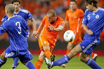 Было-было, но такого в Европе не припоминается давно... 11 безответных голов влетело в сетку ворот команды Сан-Марино. Сборная Голландии доставила наслаждение своим болельщикам, которые собрались на стадионе в Эйндховене. Обозленный ван Перси после трепки в Манчестере выместил свою злость на несчастных сан-маринцах, сделав покер, дублями отметились Снейдер и Хунтелаар, не ушел без гола и Кайт. Если в первом тайме счет был еще более-менее приличный, как для матча с такой вывеской, то во втором тайме это стало напоминать избиение младенцев. В среднем, мяч бывал в сетке ворот Симончини чаще, чем раз в 9 минут. Примечательно, что "оранжевые" нанесли всего 14 ударов в створ ворот, из которых лишь 3 удалось отбить голкиперу. Сами же гости ни разу толком не потревожили Стекеленбурга, ограничившись 3 выстрелами мимо цели. Сборная Голландии фактически оформила выход из группы на первом месте, а победа над Молдовой в следующем туре позволит говорить об этом с 99-процентной уверенностью (оставим теоретический шанс шведам). |