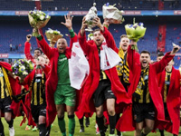 "Витесс" после не ровного прошлого сезона был вынужден искать нового главного тренера. После первого круга того сезона команда шла на высокой пятой строчке, однако в зимний перерыв её покинул главный тренер Петер Бош. С его уходом упали и результаты во втором круге. Команду подхватил Роб Маас и закончил с ней чемпионат на девятой позиции. Это был худший показатель с сезона 2011-12. Естественно Маас у руля команды не остался и арнемцы были вынуждены подыскивать нового тренера. Им стал Хенк Фрейзер, который до этого два с половиной сезона трудился в "Ден Хааге". В феврале 2014 года он сменил на посту главного тренера гаагцев Мориса Стейна. На тот момент "аисты" после 22-х туров шли на последнем месте в таблице, но с приходом Фрейзера в итоге заняли девятую позицию. В 12 матчах того сезоа при Фрейзере гаагцы проиграли всего-то один матч, да и то "Аяксу". Сезон 14-15 стал первым полноценным для этого специалиста, но в итоге лишь 13 строчка. Сезоном позже удалось подняться на две строчки выше. В нынешнем же сезоне Фрейзер пошёл на повышение в Арнем. И, как показал сезон, руководство не прогадало. Летом команду покинули ряд ключевых исполнителей, среди прочих Валерий Казаишвили. Однако удалось найти достойную замену. Из "Неймегена" был выписан Наварон Фор. К слову, НЕК и "Витесс" заклятые враги, поскольку оба относятся к провинции Гелдерланд. Арнем является столицей, а Неймеген крупнейшим городом. Поэтому этот переход не мог быть воспринят болельщиками НЕКа с положительной стороны. Но, пожалуй главный трансфер - это Рики ван Волфсвинкел, признанный в итоге лучшим игроком арнемцев в этом сезоне. 28-летний форвард является воспитанником арнемцев. 5 апреля 2008 года ван Волфсвинкел дебютировал в первой команде "Витесса". Затем были восемь лет скитаний в "Утрехте", португальском "Спортинге", "Норвиче", "Сен-Этьене" и "Бетисе". В Европе Рики так и не нашёл себя, вернувшись в родные пенаты. Сезон получился для "Витесса" историческим, поскольку впервые в истории арнемцы завоевали трофей - Кубок Голландии. Да, это первый титул за 125-летнюю историю клуба. Символично, что в финале Кубка дублем отметился как раз ван Волфсвинкел. Более того, Рики стал лучшим бомбардиром команды с 20 голами, уступив всего один мяч лучшему снайперу всей лиги Йоргенсену. Сезон внутреннего чемпионата получился не ровным, однако главное, что команда заняла достаточно высокое пятое место и благодаря победе в Кубке сыграет в Лиге Европы на будущий сезон. К слову, главный тренер команды Хенк Фрейзер был номирован на звание лучшего тренера сезона, однако премию Ринуса Михелса получил Петер Бош.