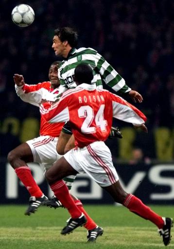 только на обороне и едва не поплатился за это. Португальцы организовали два опаснейших момента, а вернее спартаковцы создали их себе сами. Сначала после дальнего удара Филимонов вновь не удержал мяч в руках и едва португальцы не сравняли счет. А затем Ананко головой вывел португальца один на один с Филимоновым и лишь блестящая игра вратаря уберегла Спартака от второго гола. На 82 минуте наступила кульминация матча. Великолепная комбинация в стенку была разыграна Робсоном и Маркао и последний вывел один на один со Шмейхелем и изящно перекинул мяч через прославленного датского голкипера. 3:1 это уже победа. Спортинг никак не хотел смириться с поражением, и в концовке матча даже поступился правилами справедливой игры. Спартаковцы выбросили в аут мяч, чтобы оказать помощь Робсону, но португальцы назад его не вернули. На последних минутах счет мог увеличиться, но выходящего один на один Парфенова сбил Димаш, получив за это желтую карточку.