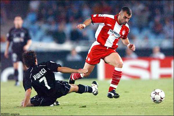 Переиграв действующего чемпиона Греции "Олимпиакос", "Реал Сосьедад" прекрасно дебютировал в Лиге чемпионов УЕФА. После двадцатилетнего забвения серебряные призеры "примеры" прошлого сезона вернулись на европейскую арену, завоевав 3 очка в своем стартовом матче. Однако греки предстали сильной и хорошо организованной командой, оказывавшей серьезное сопротивление вплоть до 80-й минуты, когда за фол Атанасиоса Костуласа на Дарко Ковачевиче были наказаны пенальти. Форвард сборной Сербии и Черногории сам подошел к "точке" и, переиграв Теофаниса Катеръяннакиса, забил исторический гол. В атаке у сансебастьянцев, которые в субботу перед стартом в Лиге чемпионов провели отличную проверку, переиграв "Расинг" (2:0), появился Оскар де Паула, а турецкий форвард Нихат Кахведжи, несмотря на залеченную травму колена, остался в запасе. Восстановился и полузащитник сборной Испании Хаби Алонсо, не раз выручавший "Реал Сосьедад" в прошлом сезоне. Греки же из-за травм Параскеваса Анцаса и Христоса Пацацоглу отрядили в оборону Кристиана Карамбе. С первых минут гости пошли вперед. Так, уже на 3-й минуте Предраг Джорджевич прорвался по левому флангу, вошел в штрафную и упал на газон, но свисток арбитра молчал. Вскоре Джорджевич опасно бил со штрафного, но его удар отразила стенка. Хаби Алонсо тем временем доказывал свою полезность баскам. Так, хавбек испанской сборной, являющийся младшим сыном знаменитого на Апеннинах Перико Алонсо, на 29-й минуте технично исполнил штрафной, однако успевший к мячу Ковачевич пробил мимо. Еще через минуту Хаби Алонсо пасом поперек поля пытался вывести на ударную позицию Хосе Баркеро, но его передачу перехватили. Вскоре Баркеро и сам выступил в роли ассистента. После его прострела Ковачевич бил мощно и, как казалось, наверняка, но Катеръяннакис с ударом справился. Собравшиеся на трибунах "Аноэты" болельщики продолжали неистовствовать, надеясь на то, что второй тайм принесет перемены, и подопечные Рейнальда Денуэкса после перерыва сделали все, чтобы использовать свое игровое преимущество. Первым свидетельством их решительного настроя стал полумомент, когда Карамбе на 49-й минуте прервал опасную передачу Баркеро. Мяч срикошетил в сторону ворот, но Катеръяннакис был готов и к этому. Подопечные Олега Протасова на 55-й минуте ответили "выстрелом" Джованни, пробившего после навеса с левого фланга мимо ворот Сандера Вестервельда. В этот момент Денуэкс, решив обострить атакующие действия своей команды, бросил в бой Нихата. Ход оказался удачным - одаренный форвард, забивший в прошлом сезоне в "примере" 23 мяча, то и дело терзал оборону гостей и принял самое непосредственное участие в эпизоде, приведшем к решающему пенальти