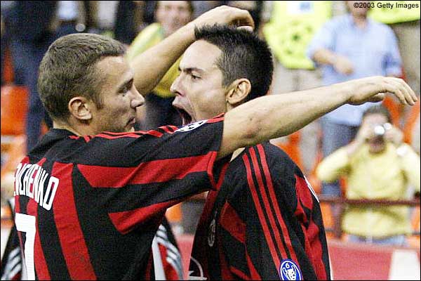 тиффози. Вскоре Пирло и Индзаги отвоевали мяч после неуверенного свободного в исполнении Богдана Лобонта и создали момент для Каки. Однако мяч после удара бразильца с 20 метров просвистел рядом со стойкой. Пару нападающих "Милана" Индзаги и Шевченко постоянно опекали два защитника голландцев, за которыми в роли либеро чаще других оказывался Петри Пасанен. Однако постепенно голландцы освоились и зрители стали свидетелями захватывающего красочного спектакля. Вскоре после того, как Рафаэль