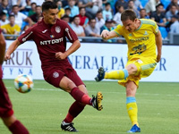 Непросто сложился для "Астаны" первый матч первого отборочного раунда Лиги чемпионов. "ЧФР Клуж" оказал команде Романа Григорчука серьёзное сопротивление и вполне мог добиться лучшего результата. Однако "сине-жёлтые" добыли минимальную "сухую" победу в родных стенах, что в условиях двухматчевого противостояния выглядит серьёзной заявкой на выход в следующий раунд квалификации. Впрочем, вся борьба в этой паре ещё впереди. Соперники стоили друг друга. И, как ни странно, дебют встречи остался за гостями, а не за хозяевами, у которых сейчас сезон в самом разгаре. ЧФР вполне мог выйти вперёд уже на 11-й минуте, но Хуан Кулио не реализовал выход с голкипером один на один. Таких верных моментов до перерыва "Астана" не создала. Хотя в двух эпизодах послед подач с угловых Дорин Ротариу, оказываясь в одиночестве на дальней штанге, вполне мог огорчить своих соотечественников, но румын оба раза не достал до мяча. В начале второго тайма "Клуж" снова огрызнулся, когда Константин Пуэн пробил в падении через себя над перекладиной. Игра пошла на встречных курсах, но "сине-жёлтые" атаковали настойчивее. В середине второго тайма они объективно стали превосходить в физике соперника. И на 68-й минуте очередной угловой принёс успех казахстанскому коллективу - отличился Евгений Постников. Тем не менее, гости могли спасти поединок в концовке. Но Билель Омрани из выгодной позиции не попал в пустой угол ворот ворот Ненада Эрича. "Астана" удержала победу и отправится в Румынию с небольшим заделом. Однако команда Дана Петреску в родных стенах, думается, сыграет в атаке ещё более агрессивно, и чемпиону Казахстана предстоит серьёзно постараться, чтобы выйти в следующий раунд отбора самого престижного клубного турнира Старого Света.