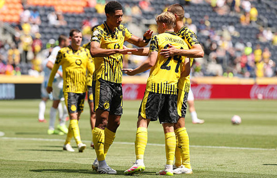 Не впечатляет пока откровенно команда Ковача, которая после унылых нулей с лидером и валидольной перестрелки с южноафриканцами забила всего один мяч главному аутсайдеру группы. Его хватило для победы, а ничья «Флуминенсе» в параллельном матче позволила дортмундцам выиграть группу с семью очками – у бразильцев оказалось всего пять, а «Мамелоди Сандаунс» в итоге до последних секунд претендовал на путевку в плей-офф. Сегодня же все могло пойти иначе, поскольку «Боруссия» нанесла в сторону ворот «Ульсана» аж 28 ударов, почти половина которых пришлась в створ. Голкипер корейцев поймал кураж и тащил все подряд, да и дортмундцы много мазали из убойных позиций. По совокупности этих факторов матч держал в напряжении до самого конца. Один мяч все-таки Свенссон затолкал незадолго до перерыва, поэтому во втором тайме «Ульсан» в целом игру почти выровнял и даже пару раз угрожал воротам Кобеля. Но чуда не произошло – более опытная и мастеровитая команда взяла своё. ![]() Фото - Getty Images Предыстория «Боруссия» стартовала на клубном ЧМ со стратегически удобной ничьей с «Флуминенсе». Дальше и бразильцы, и немцы ожидаемо справились со своими соперниками статусом пониже, хотя дортмундцам пришлось попотеть против коллектива из ЮАР. «Мамелоди Сандаунс» дал бой, забив первым и едва не отскочив в концовке – африканцы трансформировали 1:4 в 3:4. «Флуминенсе» обыграл корейский «Ульсан» более уверенно, а в очной встрече клуб из ЮАР минимально победил. Так что «Ульсан» что на бумаге, что реально выглядит слабейшей командой группы. «Боруссии» желательно побеждать для выхода с первого места – скорее всего, и «Флуминенсе» африканцев обыграет – но в целом ничья и даже поражение устроят команду Ковача – из группы она точно выйдет. Ход матча Ковач расставил команду по 3-4-1-2 с Беллингемом в оттяжке под Гирасси и Адейеми. В первой же атаке дортмундцы могли забить – прошел кросс Коуто на ближнюю штангу, откуда Гирасси в касание пробил с нескольких метров мимо створа. Несколько минут спустя Беллингем получил пространство на подступах к штрафной, но удар успел накрыть защитник. Дальше Свенссон выгрыз мяч у вратаря, а Гирасси его заковырял в ворота, но гол отменили из-за фола. В целом «Боруссия» полностью контролировала характер встречи, но темп был невысок, и корейцы вполне справлялись. На исходе трети тайма Гирасси зарядил в защитника из-за штрафной и сам же добавил с подбора над перекладиной. Следом Рюэрсон не встретил сопротивления и хлестко пробил рядом со штангой с линии штрафной. Еще одну атаку «Боруссии» сорвал ценой «горчичника» Мин Хён Ким. Рюэрсон подал на Нмечу, подрезавшего мяч мимо цели. Ближе к середине тайма «Боруссия» стала добираться уже и до ворот. Сперва Гирасси заставил слетать в угол голкипера, затем Адейеми крутил с угла штрафной – снова вратарь сыграл надежно. Пару минут спустя Беллингем отыграл в штрафную на Гирасси, в касание из убойной позиции пробившего во вратаря. Дальше сами себе привезли момент корейцы, однако снова справился с опасным ударом Гирасси после перехвата Хён У Чо. Минутой позже Беллингем влупил влет с линии штрафной – рядом с перекладиной. Тут же повис на карточке Джоб, сбив оппонента в центре поля. На исходе получаса игрового времени Беллингем замыкал очередной кросс от Рюэрсона на дальней стойке, но пробил в борьбе с за