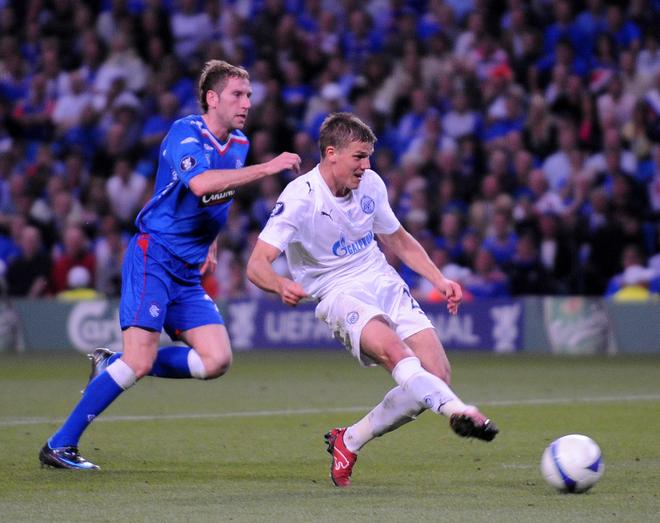 Денисов забивает гол.