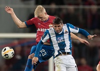 В середине тайма испанский клуб стал постепенно выравнивать ситуацию на поле. Гости наладили контроль над мячом и стали хотя бы периодически осуществлять проникновения в финальную треть поля, однако до логического завершения эти атакующие акции не доходили. Очень инертно действовал «Эспаньол» впереди. Подобную картину мы наблюдаем практически в каждом матче «попугаев» в Ла Лиге. ЦСКА, к сожалению, в течение тайма сбавил в атакующей активности и ничего интересного в нападении давно не предлагал. Скучно было наблюдать за происходящим на поле, будем откровенны. К сожалению, до конца тайма команда Гончаренко так и не вернулась на уровень стартовой активности. Лишь на 44-й минуте москвичи смогли потревожить вратаря «Эспаньола». Диего Лопес справился с ударом головой с линии вратарской в исполнении Сигурдссона. В остальном же российский клуб ничего интересного не предложил сопернику.