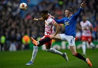 Потом уже постарались повысить свои скорости гости. Бесси сфолил на Ольмо, рвущемся вперед, желтая карточка для нарушителя правил. Голдсон в битве на «втором этаже» заехал по голове Поульсену, за что также был наказан «горчичником». Между делом Арибо на линии вратарской вроде все здорово сделал, можно было еще забивать «Рейнджерс», но вот вышеназванный спортсмен по мячу нормально не попал. Поульсен и все остальные старались играть на Нкунку, в надежде, что лидер придумает нечто интересное, но ему не хватало поддержки партнеров на передовой. Баришич же увидел перед собой «желтый свет», раз сфолил на Хенрихсе. Португальский рефери Диаш отрабатывал отлично. Анхелиньо, кстати, решил в ближний угол мяч отправить, а попал в лицо Арибо, разумеется, не было злого умысла. Однако пострадавшему помощь потребовалась. Одну минуту арбитр добавил к основному времени тайма, а Арибо сменил Сакала, видимо, травма была серьезная, оставалось пожелать здоровья спортсмену. А вот «Лейпцигу» надо было желать удачи, ведь с такой игрой путь финал ЛЕ им был закрыт. Понятно, что шотландцы могли подустать, уж очень много они бегали, однако при такой поддержке могли вполне и устоять. У Тедеско с его подопечными возникли серьезные проблемы, на решение которых оставалось очень мало времени.