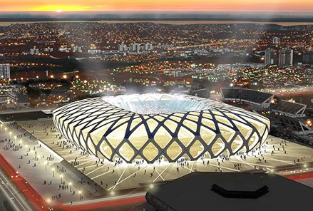 31 мая 2009 года стало известно, что часть матчей чемпионата мира по футболу 2014 года состоится в Манаусе. В связи с этим в городе было решено построить новый стадион на месте арены «Вивалдан». Проектирование нового стадиона было поручено немецкой компании «GMP Architekten». При создании проекта «Амазонии» важную роль сыграл экологический фактор. Так, предусмотрен сбор дождевой воды для дальнейшего её использования на нужды стадиона, а энергообеспечение арены будет частично осуществляться за счёт солнечных батарей. Арена имеет сложную конструкцию из стали, импортированной из Португалии, которая окутывает игровую зону, как плетеную корзину. Более 95% материала от старого снесенного стадиона используется повторно. В конце сентября 2013 года, когда готовность стадиона оценивалась на уровне 84%, началась укладка газона на футбольном поле. Параллельно с этим производился монтаж ирригационной и вакуумной дренажной систем под руководством бразильских и испанских специалистов.