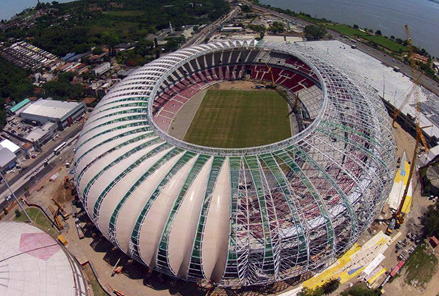 Самый большой стадион на юге Бразилии. Официальное название стадиона Жозе Пинейро Борда - в честь португальского инженера, который на протяжении многих лет вынашивал идею создать в Порту-Алегри грандиозный стадион, положив начало его строительству. Этот стадион является домашней ареной футбольного клуба "Интернасьонал". Был построен в 1969 году и сначала был рассчитан на 90000 человек. Но различные требования ФИФА вынудили уменьшить вместимость до 56000. В строительстве новой арены активное участие приняли болельщики команды - они помогали цементом, гвоздями, металлическими блоками, кирпичами. Первый матч на стадионе Бейра-Рио состоялся в полдень воскресенья 6 апреля 1969 года. Интер со счетом 2:1 победил в товарищеском матче португальскую Бенфику.